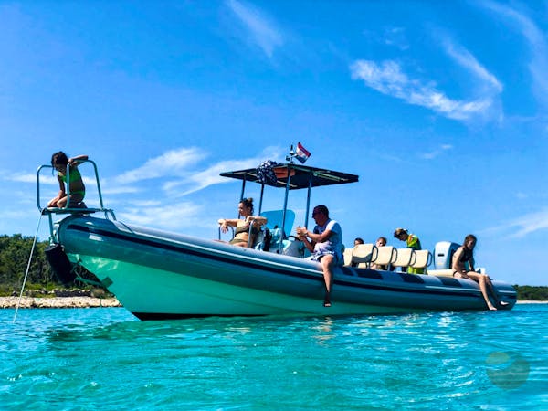 The location around Pag Island is perfect for boat trips, boasting crystal-clear waters, hidden bays, and nearby islands like Olib, Silba, and Maun. Its lunar-like landscapes, calm seas, and stunning sunsets create a breathtaking setting. With snorkeling, water sports, and panoramic cruises, plus access to Kornati National Park, it’s an unforgettable Adriatic adventure.